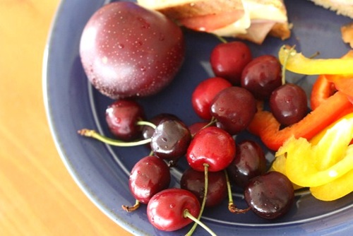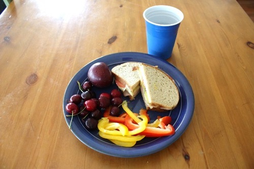 Our lunches were very similair today. Sandwich. Cherries. Veggies. Yumminess! 😀