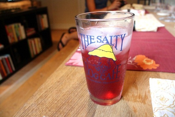 I’m also copying Emily’s Ball jar idea — actually, I’m using any glass jars I get my hands on, including former salsa jars, pickle jars, nut butter jars, etc. I’m trying to save most of my actual Ball jars for canning 🙂