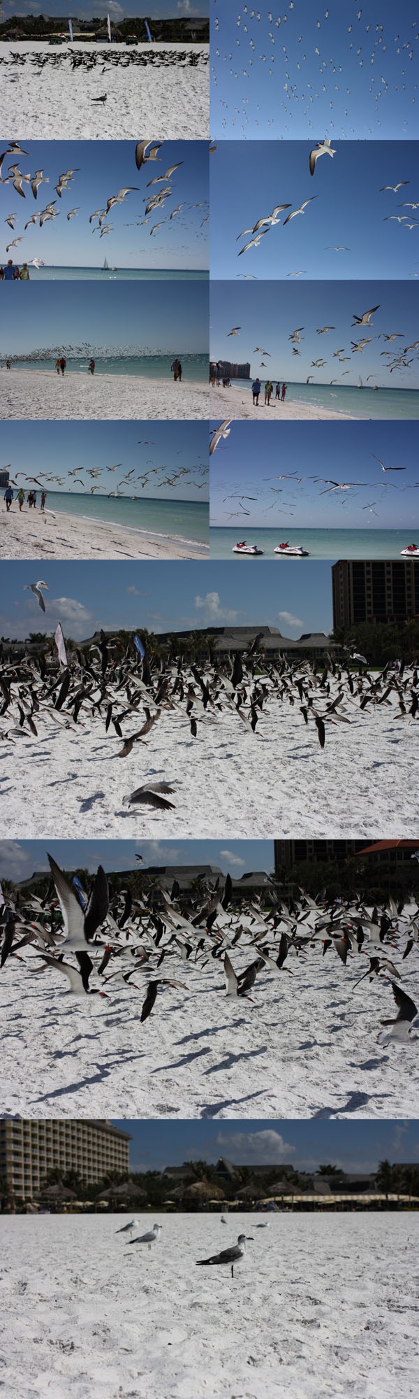 Now THAT is a working vacation! The Gulf of Mexico sand I know is super soft, snow white and makes puppy wimper noises when you walk in it barefoot. Must be a different part. Holy birds!