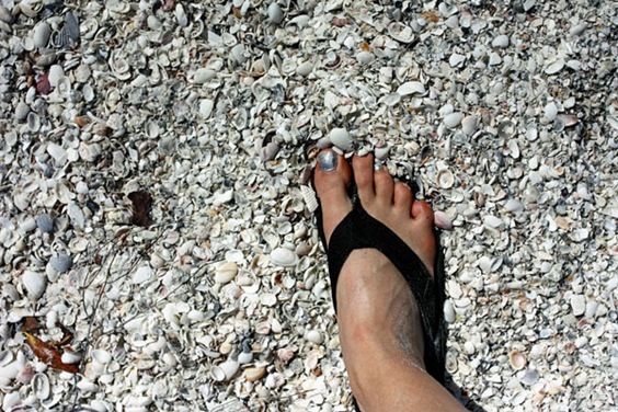 We walked for about 30 minutes, tip-toeing around shells and doing the “ow ow ow” dance. Finally we retrieved our flip flops and did another 30 minutes pain free.