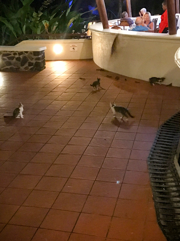 There were stray cats all around the resort, and this mama had three kittens with her. I sure wanted to pick one up to snuggle, but I didn’t want to risk getting clawed by the worried mom – or the kitten itself! House cats these were not.