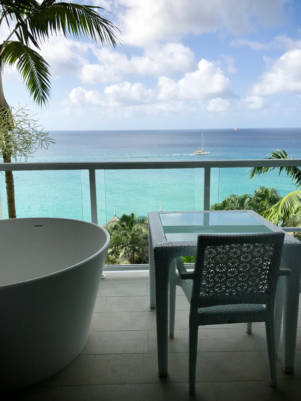 Our room was stunning – it was a one-bedroom suite with sweeping views of the ocean high up on Sunset Bluff. We even had a ‘Tranquility tub’ on our balcony, a rain shower, and beautiful modern decor. I was very impressed!!