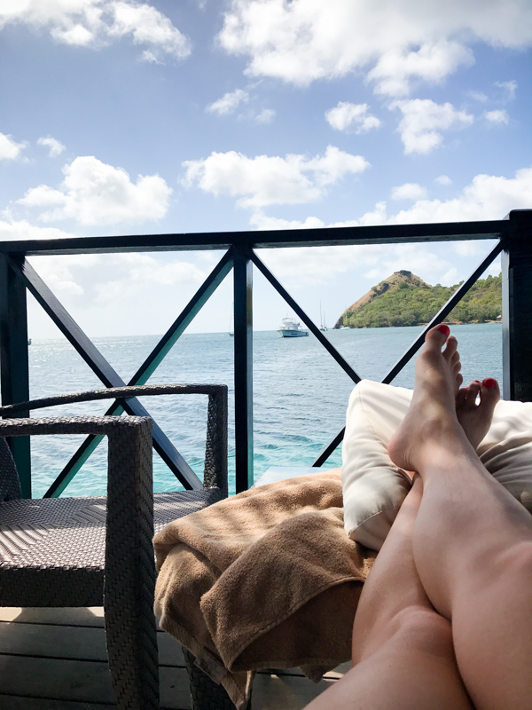 There are three Sandals resorts within about 30 minutes of one another, and you can visit, dine at and enjoy all of them no matter which one you’re staying in. So we headed over to the Sandals Grande to check out the beach there. The La Toc beach surf was quite rough, and there were red flags up most of the days so I never got in (T did a few times), but the Grande beach is calm as can be in a big bay, and a lot of the water sports like sailing and water skiing are housed there. There were practically no waves, so we did a lot of swimming around and floating on some big rafts.