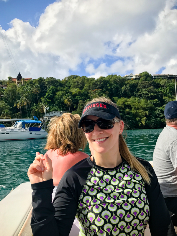 The Pitons were huge, and we got to snorkel underneath them. It wasn’t the greatest snorkeling ever, but I saw some beautiful iridescent fish, which I loved.