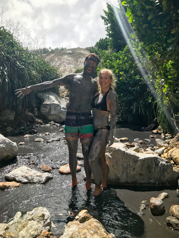 Our next stop took us to the town of Soufrière. Here, we hopped out of the boat and took a shuttle up the mountain to the Sulphur Springs Park where we got to dip into the mud baths that are fed by a dormant volcano. The springs were over 100 degrees and the experience was like soaking in a hot tub filled with stinky charcoal paint! (Nicer than it sounds!)