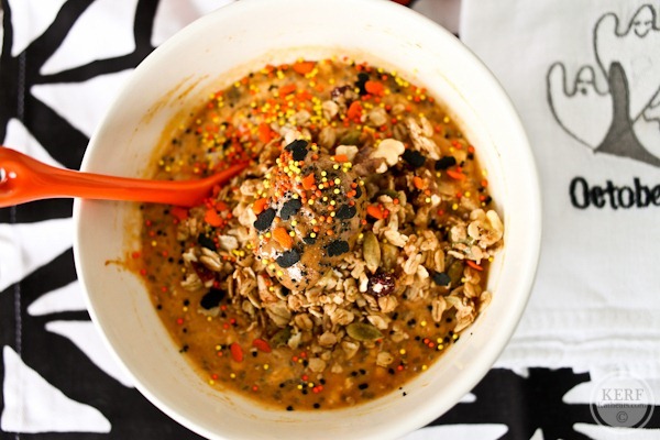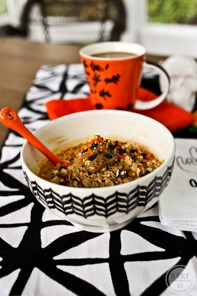 Overnight oats with pumpkin topped with Autumn Spice Granola (so completely addicted) and Wild Squirrel