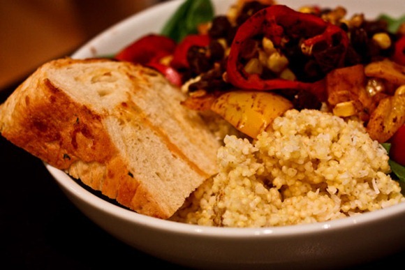 On the side – coconut millet (millet cooked on the stove top for 20 minutes with 1 tbsp coconut oil (coconut butter is even better!) plus coconut flakes – and a slice of toasty cheddar garlic!