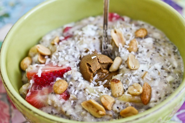 Strawberries + cottage cheese + oatmeal is always a winner. I also like to mix it up and use part oats and part grains (couscous or quinoa). The texture is amazing!