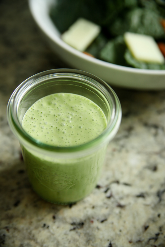 I happen to be super picky about bottled dressing. I had one Caesar dressing I loved from Whole Foods, but I can’t seem to find it where I used to buy it. They either moved it or it’s gone! That’s really it – anything shelf stable I find tastes too oniony or something. But the good news is that you can make your own dressing super fast. Or, if you’re on a roll, make it in advance! This is my all-time favorite creamy dressing, but most often I just go with some olive oil, lemon juice and honey drizzle, or even a drizzle of prepared pesto.