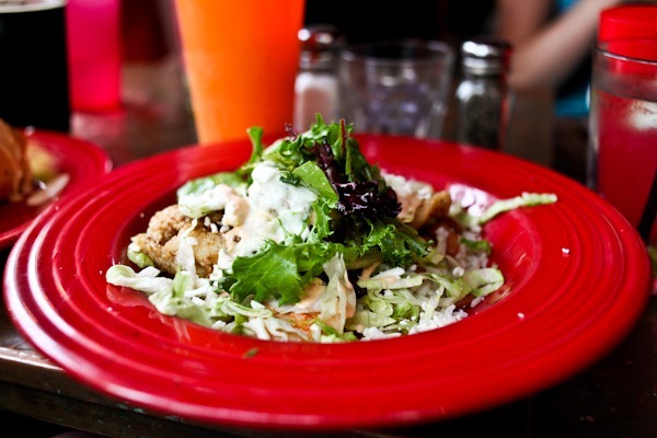 I feasted upon Bobby’s Burrito in a bowl – Crispy Cod + Spicy Shrimp! Plus beans, rice, greens and special sauces.