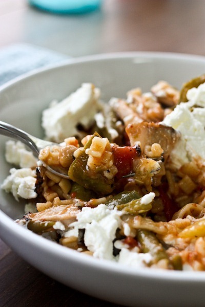 And then back at home, I was thrilled to have a heat n eat dinner to look forward to. This was a combination of leftover Minestrone “soup” and last night’s pork plus a generous portion of goat cheese.