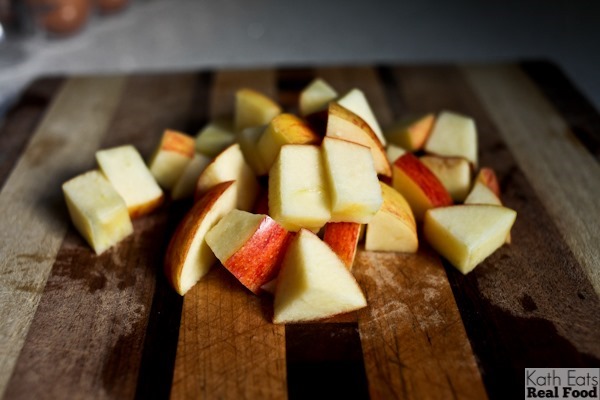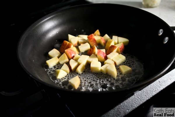 Add your apples to a skillet set to medium heat along with a few tablespoons of water to help them steam.