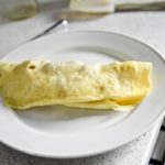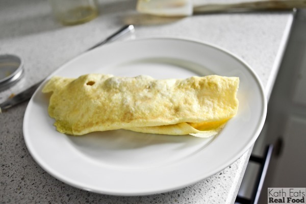 - Fold over one third of omelet and then slide onto plate, folding other other side with the edge of the skillet.
