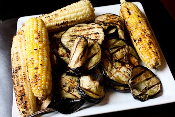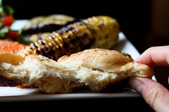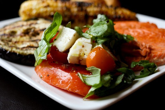 “– caprese salad, corn on the cob, grilled eggplant, Cheddar Garlic Knots and wild Alaskan salmon!”–oh it all sounds and looks fab! The grill marks on the corn and eggplant make me really wish I had a grill! Urban living at it’s finest…no grill these days. Oh well!