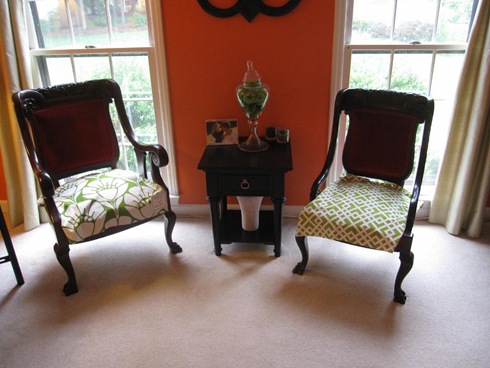I love your blog- it is a stupid comment, but I feel it has really inspired me in a much-needed way recently! My comment is about the chairs- Have you thought about doing one chair in each. It is kind of asymmetrical and I cant tell how close the colors are, but it might be interesting to have some contrast and distinct character within/between the two. Just a thought and thanks again!