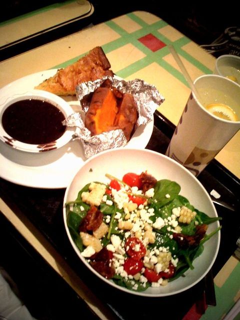 I ordered half a salad with corn, goat cheese, dates and spinach. Yummmmmm! I love dates.