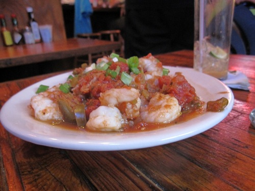 And Karen got Shrimp Creole, and I had some of that too. It was another big sharing meal. Despite eating a healthy (meaning βlargeβ) portion, I didnβt leave that full. I feel kind of bottomless pit-ish today β perhaps my lack of sleep affecting leptin levels?