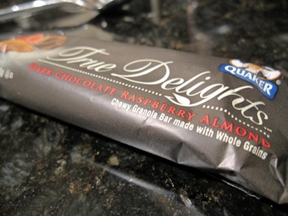 + half of this Quaker True Delights Dark Chocolate Raspberry Almond Bar. It was good, but the Coconut Banana was better! I wish the raspberry chunks had been bigger, but I loved the chunks of chocolate!