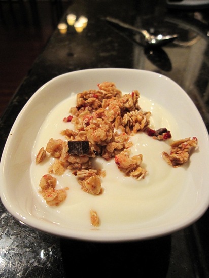 Since we ate so early I felt an inkling of hungry around 8:00, so I had a little yogurty snack. I really love TJ’s Euro yogurt but it’s been sold out at my store for months. It’s very tangy but still much thicker than normal plain yogurts that aren’t Greek. Greek still holds a place in my heart, but this is fun for a change (and is half the price per oz).