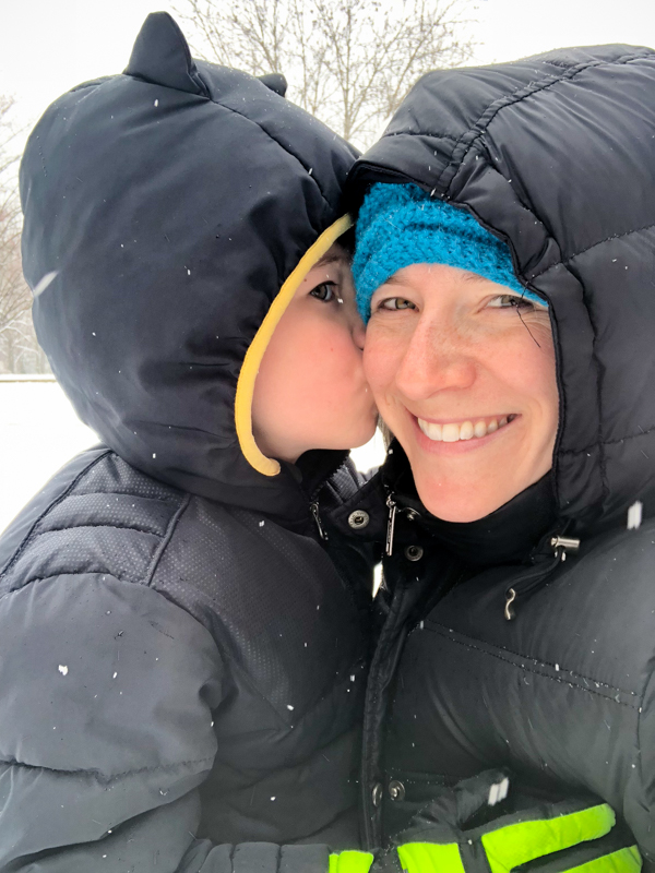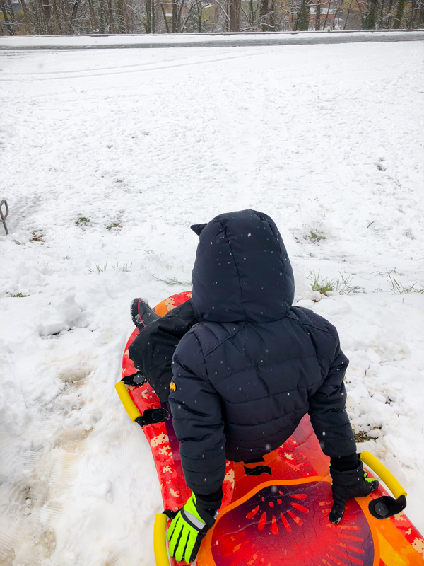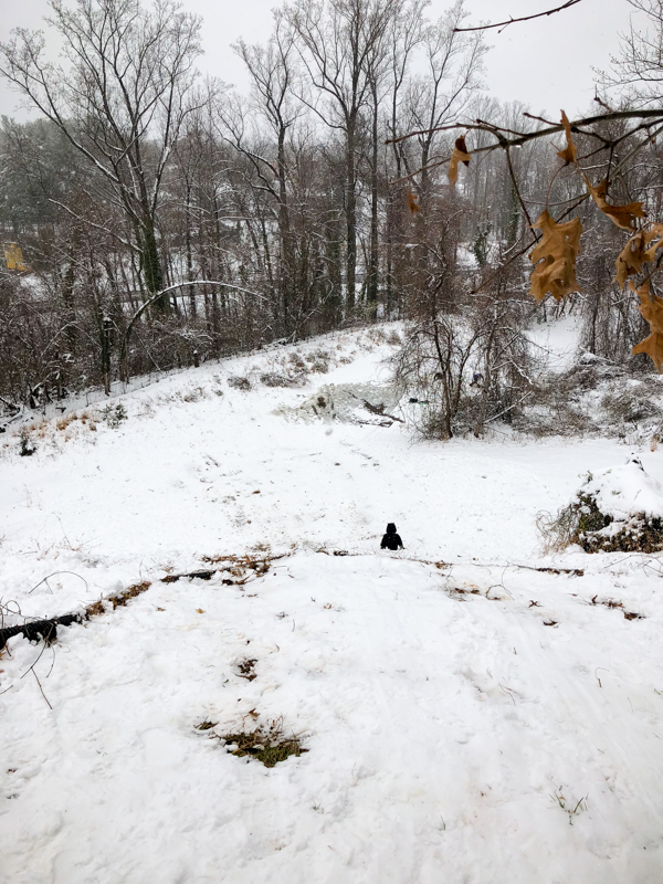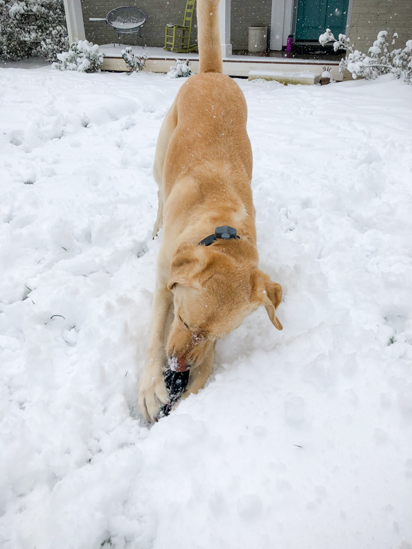 We had a good feeling we’d be getting some spring snow, but I had no idea how much would actually fall by breakfast! I think we got a good 5-6″ – perfect for sledding and snowballs, or chewing Star Wars toys!