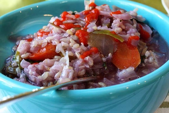 I usually walk in the door from my noontime workouts ready to dig straight into a lunch! My 10 minute shower seemed so long today because I couldn’t wait to heat up this leftover beetlejuice soup!