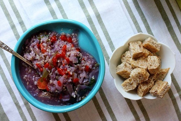 That soup is stunning in that blue bowl! How beautiful.