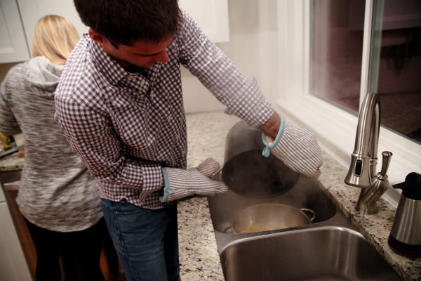 When a big snow storm is in the forecast, what better way to get snowed in than with a Blue Apron delivery on your doorstep. There’s no need to wait in the long grocery store lines when all the ingredients you need are in one box. During our recent blizzard, Matt and I got to work making this delicious pasta. It was warming, filling and a fun activity to do together after Mazen was tucked into bed.