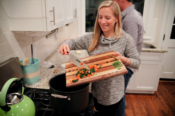 Oh this looks so nice and cozy! Great idea for a date night in. It’s funny to see both you and Matt cooking together! Did you have a photographer come by for the shoot, or were you able to use a tripod/timer?