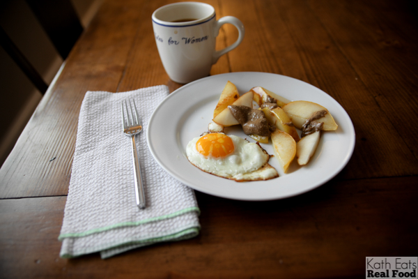 And numero dos – fried egg, pan-cooked pear and more sunflower butter (Naturally Nutty – so good!)