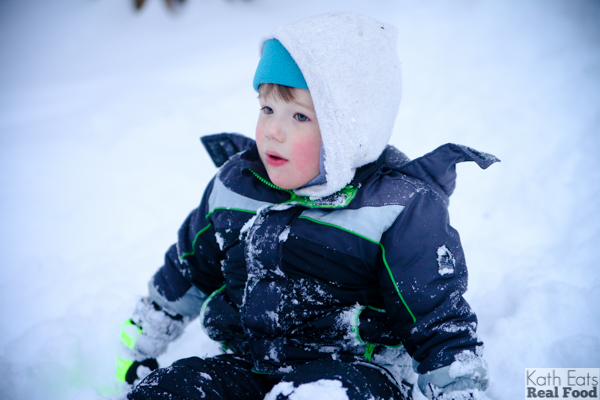 And a Cook Smarts Broccoli and Cheese soup on our biggest snow day. {Despite the face, he LOVED sledding!}