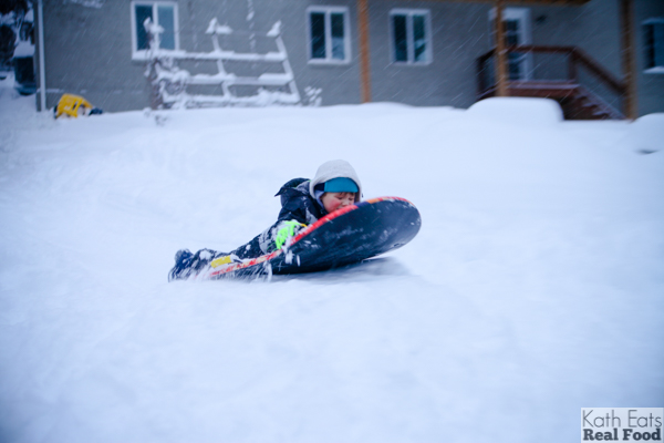 We had a great time sledding in our yard but kept the camera inside most of the day for protection. Alas I didn’t capture many photos, but he wore himself out going up and down the hill with our neighbor friends!