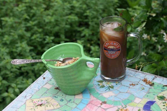 Caftea, iced!!! It was just too muggy for hot coffee. Matt made it for me and added a sprig of mint. Brilliant!