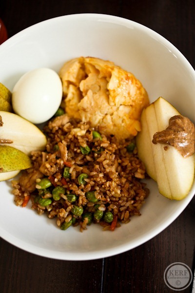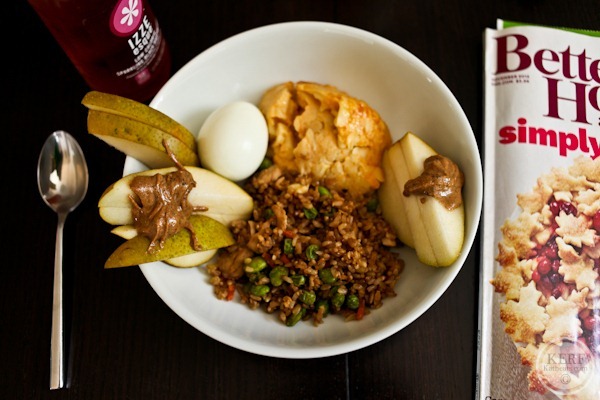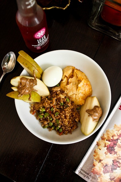 And lots of leftovers! Hard-boiled egg, mac n cheese and Hillary’s fried rice
