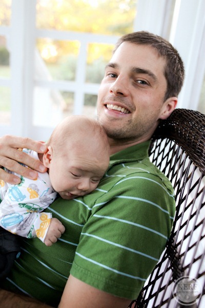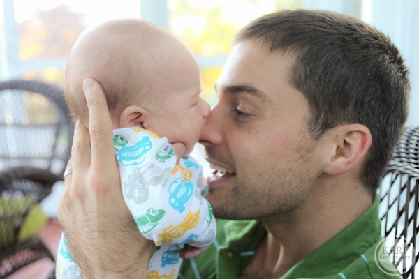 Dad knows it’s time for a feeding when M nibbles on his nose. Too bad milk can’t come out of there.
