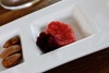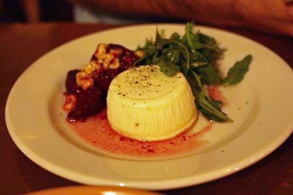 The first course was a goat cheese panna cotta with greens and beets and hazelnuts