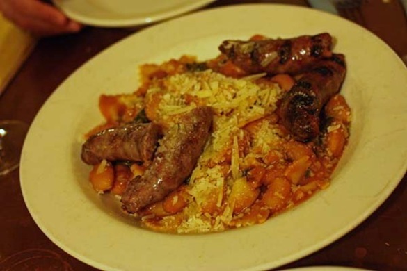 Second course was shared with Matt – a huge plate of pasta with giant butter beans and lamb sausage in a tomato sauce