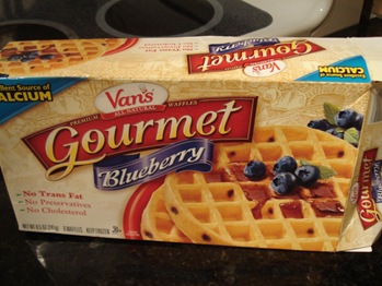 Kath and Lucy – I don’t care for the Van’s waffles either. Besides being pretty nutritionally void, they’re really bland and just, well, blah and they never seemed to get crisp. I had a coupon and bought two boxes. Even my kids didn’t like them and they love waffles. I like the Kashi, but I have to admit that Nutrigrain Eggo Blueberry are my favorite. Not as healthy as the Kashi, but since I only eat them once in a blue moon (usually when I have a big craving), I usually buy those. If I’m feeling virtuous, I’ll buy Kashi. I love to top them with PB and jam. Yummo!!!!!