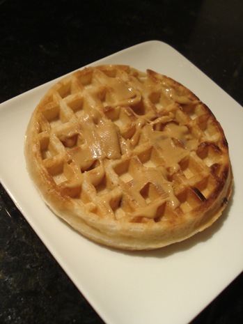 I woke up pretty hungry today so I had a snack before I left. The thought of a snack certainly does make a 5am gym appearance more worthwhile! I bought these frozen waffles after they were reviewed in some magazine like 6 months ago. I didn’t even think about the fact that they aren’t whole grain or high fiber. They’re not very good.