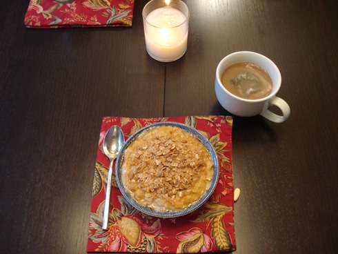 I had the same breakfast- pumpkin oats and tea with milk! It was delicious.