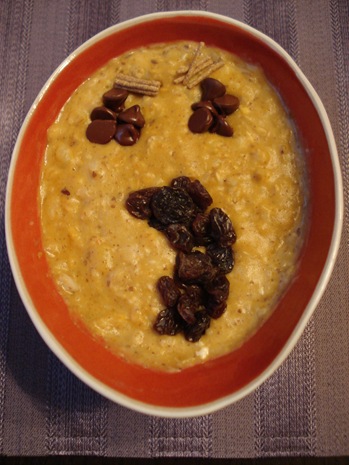 Your oatmeal is cute! I had black and orange oatmeal (pumpkin & raisin) but your faces are super creative!