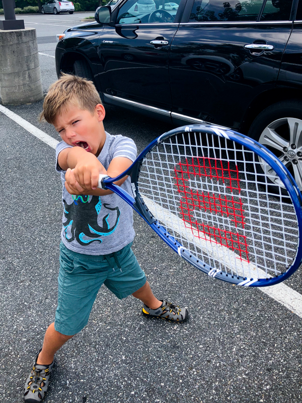 And a tennis racquet! He’s been learning to play at camp this week and seems to really like it.