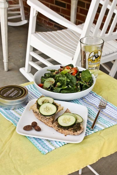I spread it on tempeh with cucumber on High Five bread – it was kickin’ good!