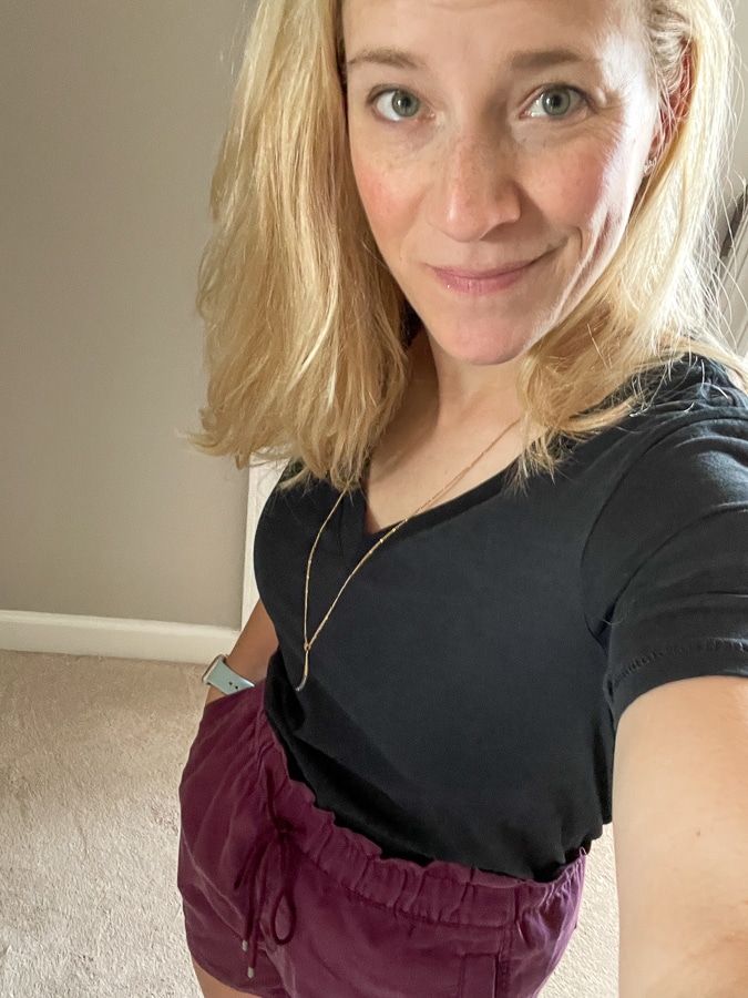 I bought these maroon colored shorts along with the Lou + Grey Black Muscle top! Love the elastic waist and pockets on the shorts. And the top is a dress-up-or-dress-down choice.