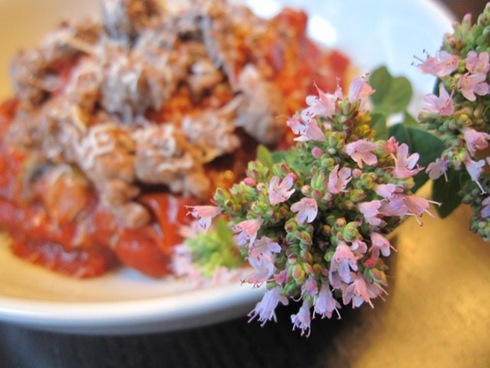 We ate mom’s sauce over whole wheat spaghetti with some cooked ground beef, mushrooms and green peppers. It was A.mazing.
