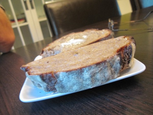 Matt always asks me if I want bread will dinner. I usually say “nah, I don’t need any.†And he has learned to make two pieces anyways because I usually take a bite of his!! Here are his two pieces of Blue Cheese Walnut bread, and I had two bites 😉