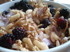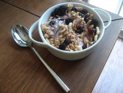I had a big bowl of Stonyfield blueberry yogurt with organic morning cereal and blackberries around 3pm. Plus a seltzer.