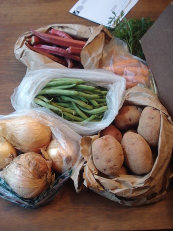 Plus a bunch of other loose things – onions for Karen, green beans, strange looking okra, carrots, potatoes –