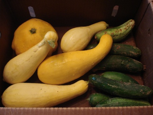 We got our CSA delivery today and the box was filled with giant yellow squash –