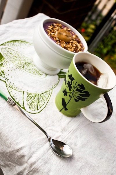 I love those pictures of your purple smoothies! Definitely the prettiest smoothies I think. That table cloth with the limes on it is so charming.. it makes me think of a beach hose for some reason… no clue why haha