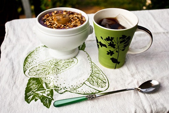A beauty of a smoothie, and love the green theme of the mug and place mat. Yeah, it’s so hot out I think we’re all burning plenty of calories just walking around and sweating it out!